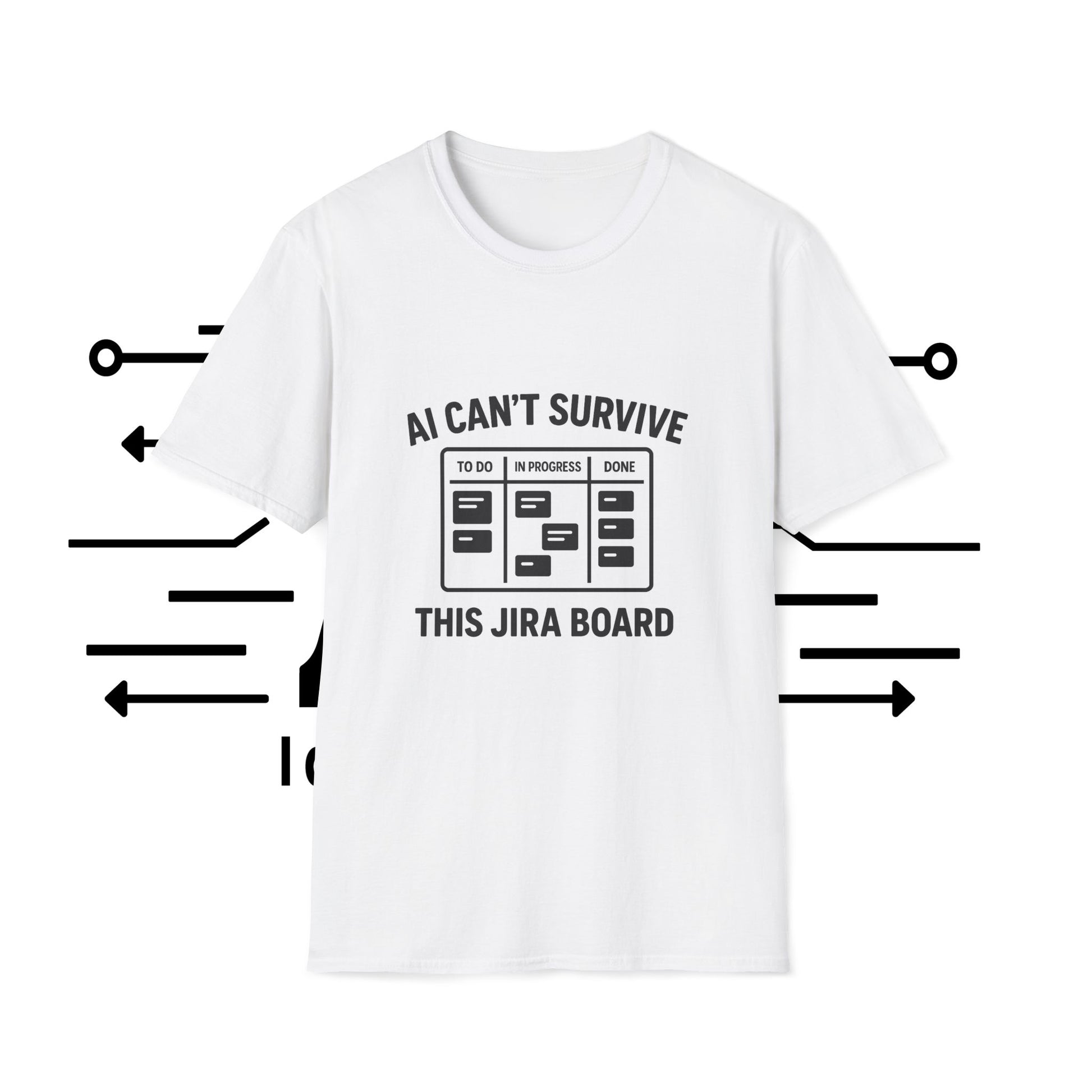 AI Themed T-Shirt - 'AI Can't Survive This Jira Board'