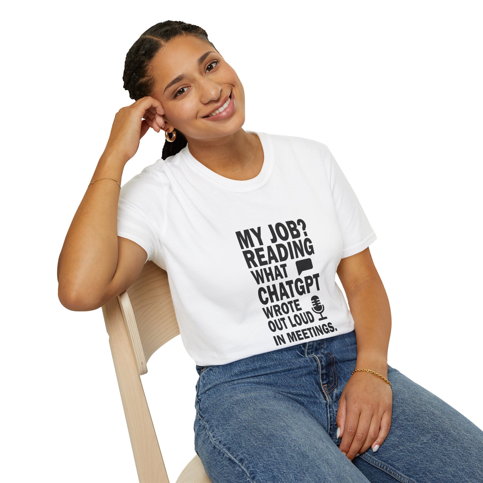 AI Themed Unisex T-Shirt - 'My Job Reading what Chat GPT Wrote Out Loud in Meetings'